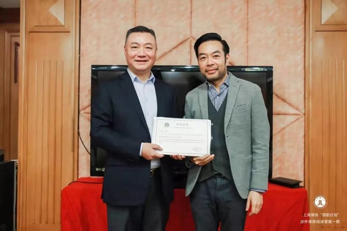 上海市律師協(xié)會副會長朱林海出席“領(lǐng)航計劃”涉外律師培訓(xùn)營第一期結(jié)業(yè)儀式,并向?qū)W員代表頒發(fā)結(jié)業(yè)證書。他祝賀學(xué)員們完成了全部培訓(xùn)課程,并表示“領(lǐng)航計劃”既是十一屆上海律協(xié)外事工作的重要舉措,也是全新的工作嘗試。本次培訓(xùn)取得圓滿成功,相信此類培訓(xùn)將會繼續(xù)受到廣大律師的歡迎。非常感謝第一期學(xué)員起到的良好示范效果,上海律協(xié)今后將會繼續(xù)推出新的培訓(xùn)課程,也期待學(xué)員積極參與IPBA等國際律師組織活動。
