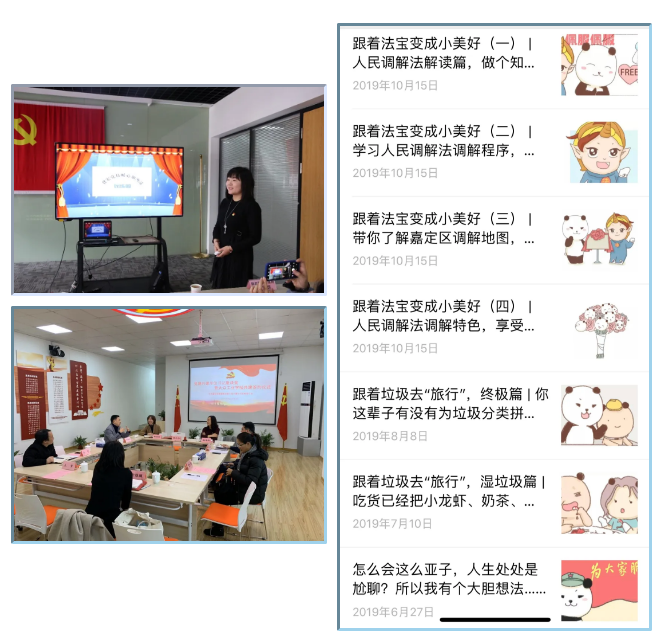 法律團隊服務經濟社會發展。以黨支部書記、骨干黨員律師為主力建立公共法律團隊,積極參與基層法治建設。認真落實法律顧問工作要求,為政府重大行政決策、重大執法活動等提供法律服務保障,參與政府重大決策法律論證、重大事項社會穩定風險分析評估、突發事件應急處置等重點工作。積極投身科創中心重要承載區建設,與高新企業、新領域企業的法律服務對接,為企業創設、運營提供精準法律服務,為嘉定營造法治化營商環境貢獻力量。主動承擔人民調解社會責任,去年與區司法局合作開展人民調解法普法快閃活動,自編自導自演小品劇《愛在嘉定》,讓社區居民知曉法律、了解調解魅力。今年成立區內首家律師調解中心,為化解社會矛盾、維護社會穩定主動承擔社會責任。