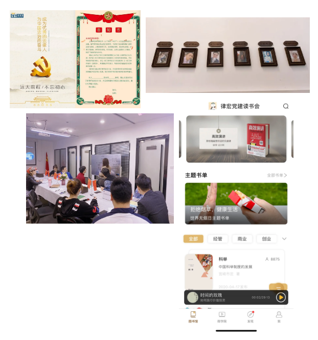 激勵培養律師人才后備梯隊。以“為新時代法治建設輸入新鮮血液”為目標,堅持培養具有獨立執業能力的律師,同時做好青年律師的“傳幫帶”工作。為每一位實習律師精心挑選帶教老師、量身定制培養計劃、為實習律師發放《實習律師手冊》,記錄律師培養全過程,從熟悉律師工作、法律基礎課程、語言表達技能、法律文書技能、律師實務技能、非訴技能、法律公益服務七大模塊進行培養,記載培訓項目,幫助每一位實習律師成功踏出成為優秀律師的第一步。要求實習律師根據培養計劃,在帶教老師的指導下,獨立完成項目任務,并由帶教老師打分寫評語,讓實習律師時刻清楚了解自己的學習方向。為更好激勵和增強青年律師的學習和工作熱情,設立“日理萬機”“獨占鰲頭”“財神爸爸”“黨建先鋒”“智慧之星”“運籌帷幄”等六個獎項,每月評選一次,分別對全所考勤時長最久、月工資最高、業務創收最多、黨建工作最突出、月分享最佳、工作時間最長的人員進行獎勵。成立“律宏黨建讀書會”,書籍內容涵蓋商業、心理、歷史等各個方面,每天公布學習積分,不斷拓寬青年律師的知識面。開展“周五分享會”,實習律師及實習生共同分享學習法律、讀書心得、辦案體會等,在分享過程中找到問題、解決問題、鍛煉自信,充實學習和成長經歷,律所負責人親自對實習律師和實習生分享的案例進行點評。