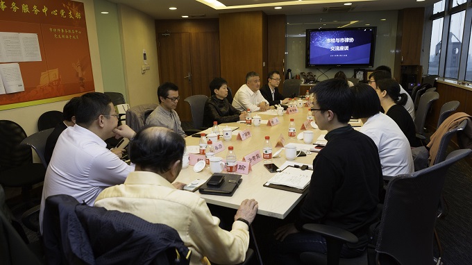 2019年4月18日下午,市檢察院由第七檢察部主任何艷敏帶隊,市檢察院三分院第六檢察部主任房長纓等行政監察部門人員來到市律協開展調研座談。市律協副會長潘書鴻、副秘書長潘瑜、稅法業務研究委員會主任陸易、副主任盧國陽、行政法業務研究委員會副主任王昊東、李劍瑜、知識產權業務研究委員會副主任傅鋼、金融工具業務研究委員會副主任劉春彥等參加座談會。