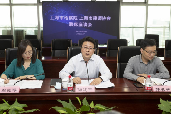 2021年9月27日上午,上海市人民檢察院副檢察長陶建平 ,案管辦主任韓孔林、副主任周霞琴等 一行到訪上海律協,聽取本市律師對互聯網閱卷工作的意見和建議。上海律協副會長潘書鴻,信息化工作委員會副主任華琪 ,社會公益與法律援助業務研究委員會主任鄭琪 ,刑訴法與刑事辯護業務研究委員會主任王思維、副主任傅建平,刑事合規業務研究委員會副主任顧偉等參加座談。