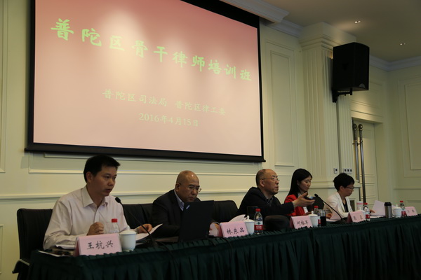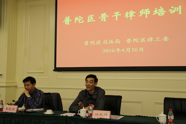 2016年4月15日至16日,普陀區(qū)2016年骨干律師培訓班順利舉辦。全區(qū)各律師事務所主任,區(qū)律工委委員,區(qū)青年律師聯(lián)合會、女律師聯(lián)誼會理事、秘書長共80余名律師參加培訓。區(qū)司法局副局長、律師黨委書記何榕軍、副局長張蓉出席培訓班。