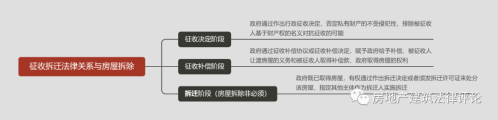 第二個(gè)階段是征收補(bǔ)償階段,政府通過征收補(bǔ)償協(xié)議或征收補(bǔ)償決定,賦予政府給予補(bǔ)償、被征收人讓渡房屋的義務(wù)和被征收人取得補(bǔ)償款、政府取得房屋的權(quán)利。