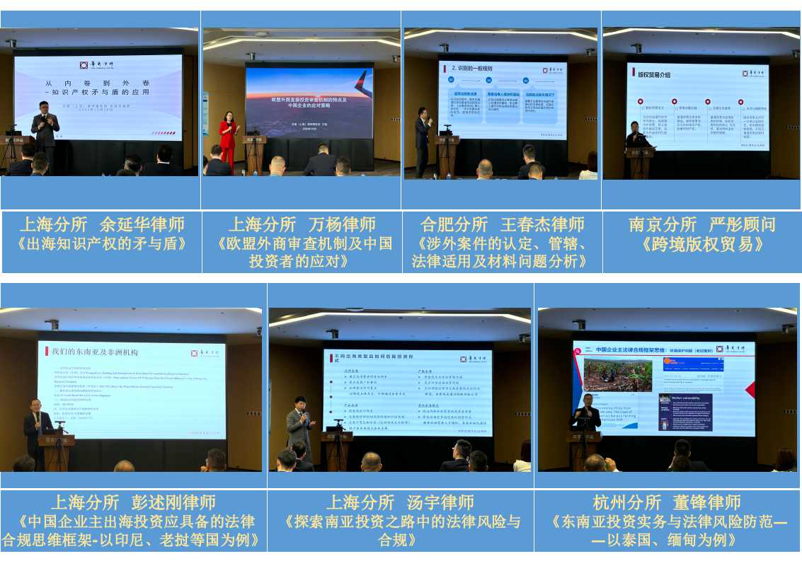 本次論壇邀請到了華商律師事務(wù)所上海、杭州、合肥、南京等地分所的多位資深律師及業(yè)界精英,共同構(gòu)成主講嘉賓陣容。主講人們憑借各自在企業(yè)出海領(lǐng)域的深厚功底和豐富經(jīng)驗,為與會者帶來了精彩紛呈的演講。他們從知識產(chǎn)權(quán)、外商審查機制、涉外案件的代理、版權(quán)貿(mào)易、南亞及東南亞的投資合規(guī)等不同角度深入剖析了企業(yè)出海面臨的挑戰(zhàn)與機遇,分享了多個成功案例,為參會者提供了寶貴的實戰(zhàn)經(jīng)驗和策略建議。