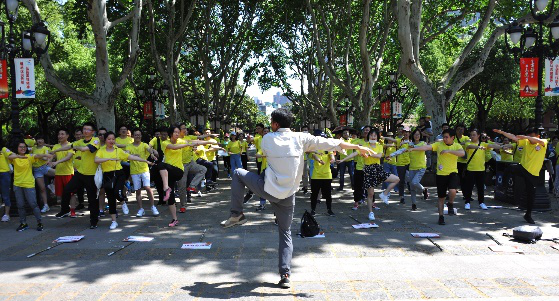 當隊伍到達白玉蘭廣場時,工作人員早已備好筆墨。參賽隊員潑墨揮毫,體會書法這一中華傳統文化的藝術之美。現代的建筑景觀與悠久的文化藝術交相輝映,在黃浦江畔展現出美麗虹口多元包容的城市畫卷。
