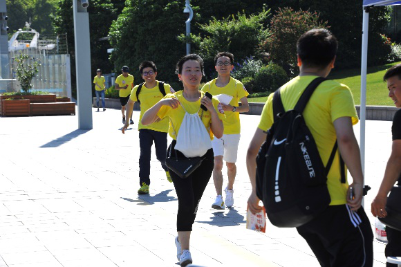經過重重跋涉和挑戰,參賽隊員最終到達了風景宜人的北外灘綠地,完成了全部活動任務。雖然隊員們面容略帶疲憊,但也不時發出陣陣歡聲笑語。