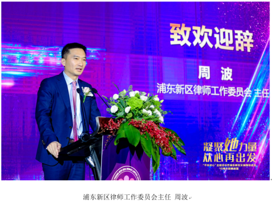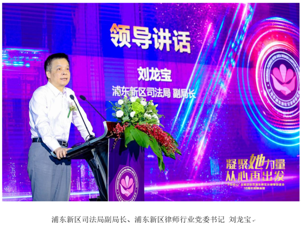 浦東新區司法局副局長、浦東新區律師行業黨委書記劉龍寶,浦東新區婦聯主席、黨組書記陸敏之,上海市女律師聯誼會會長鄒甫文,浦東新區律師工作委員會主任周波,浦東新區女律師聯誼會會長張玲在會上發表講話。