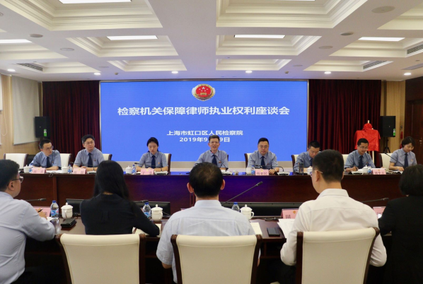 9月19日下午,虹口區司法局、虹口區人民檢察院聯合召開保障律師執業權利座談會暨值班律師工作站揭牌儀式,區司法局黨委書記、局長王浩、虹口區檢察院黨組成員、副檢察長陳衛民、檢委會專職委員楊亞民、區司法局律公科科長周俊、區律工委主任田波、區律師事務所主任代表、區司法局公服科干部及虹口區檢察院主要業務部門負責人、辦公室和檢務保障部主任等參加會議,會議由虹口區檢察院黨組成員、副檢察長陳衛民主持。