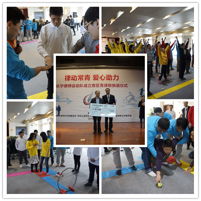 之后,新成立的長寧律師籃球隊、足球隊、羽毛球隊及青律聯一隊、二隊共五支隊伍開始了“誰是臥底”的游戲,并和上港隊球員孫祥進行了顛球比賽等互動環節,現場氣氛引向高潮。五支律師隊還分別與輔讀學校兒童共同完成了“愛心助力”趣味運動比賽,區律工委副主任蔣信偉律師還代表區律工委對長寧輔讀學校進行了捐贈。