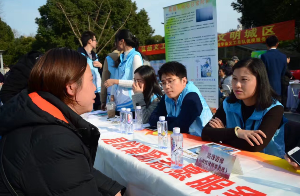 3月3日下午,長寧公證處、新華律師事務(wù)所、九州豐澤律師事務(wù)所、海匯律師事務(wù)所、君悅律師事務(wù)所共10多名法律志愿者在中山公園米蘭廣場參加“學(xué)雷鋒、吾志愿”大型便民公益便民咨詢服務(wù)。志愿者們耐心地解答了有關(guān)繼承、房產(chǎn)、婚姻家庭、勞動爭議、財產(chǎn)權(quán)屬、遺囑公證等方面的法律問題。