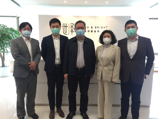 隨后,呂書記一行走訪世澤所。世澤所合伙人連晏杰律師就律所疫情期間的各項工作及復工復產情況進行匯報。疫情期間,世澤所推出線上培訓課程,為所內員工提供學習交流平臺。同時,開設網絡直播公益課程,為武漢、上海等地的應屆畢業生提供專項就業指導。世澤所主任丁震宇及合伙人董輝律師對律所主要業務進行介紹,指出世澤所當前主要從事涉外法律服務,且服務領域及服務對象不斷有所拓展。