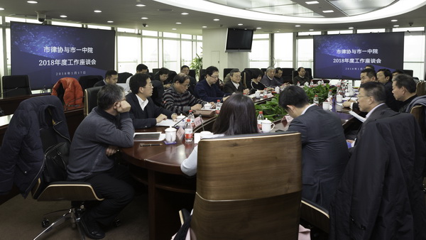 2018年1月17日下午,市一中院陳立斌院長,湯黎明、劉力、孫敬滬副院長,副局級干部及相關(guān)部門負責(zé)人等來到市律協(xié)開展大調(diào)研并召開2018年度工作交流例會。市律協(xié)會長俞衛(wèi)鋒,副會長周天平、王嶸,監(jiān)事長錢翊樑,八屆會長劉正東,副秘書長王旭峰、潘瑜,理事、銀行業(yè)務(wù)研究委員會主任謝向陽,維護律師執(zhí)業(yè)權(quán)益委員會副主任安翊青,商事爭議解決業(yè)務(wù)研究委員會副主任孫彬彬,破產(chǎn)清算業(yè)務(wù)研究委員會副主任朱小蘇和刑事業(yè)務(wù)研究委員會委員王思維等參加座談。