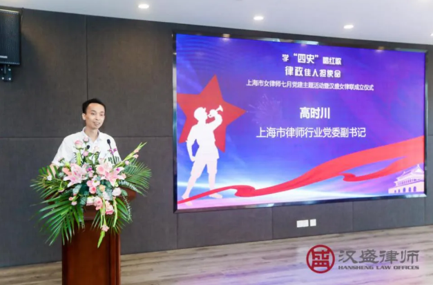 上海市律師行業(yè)黨委副書(shū)記高時(shí)川代表市律師行業(yè)黨委對(duì)本次上海女律師黨建活動(dòng)和漢盛女律聯(lián)的成立表示祝賀。他回顧了黨的百年發(fā)展歷程,女性同胞作為“半邊天”,在黨的革命和建設(shè)事業(yè)中作出了重大貢獻(xiàn),并在各個(gè)領(lǐng)域涌現(xiàn)出一批杰出的女性代表人物。他希望基層女律聯(lián)組織把握好政治定位,堅(jiān)持黨的領(lǐng)導(dǎo)和黨建引領(lǐng),積極發(fā)揮專業(yè)導(dǎo)向、踐行社會(huì)責(zé)任,為推動(dòng)新時(shí)代法治建設(shè)貢獻(xiàn)更多的力量。
