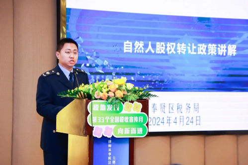 區(qū)稅務(wù)局個稅科副科長高潔圍繞《自然人股權(quán)轉(zhuǎn)讓政策講解》進(jìn)行專題授課。