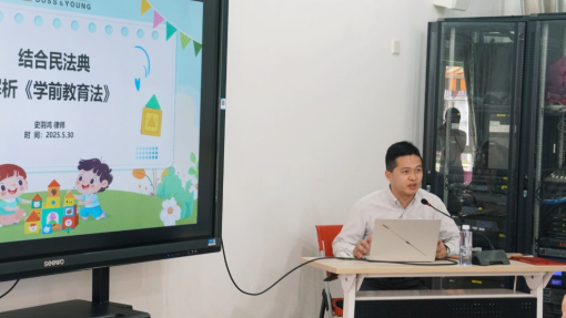 2025年5月30日,黃浦區青年律師聯誼會走進上海市長寧區威寧路幼兒園開展《學前教育法》專題普法活動,結合立法要點與實務案例,為園所管理者及教職工帶來專業解讀。青律聯副會長、上海邦信陽律師事務所合伙人史羽鴻律師及青律聯理事、上海中因律師事務所韓磊律師、黃博軒律師共同為幼兒園教師職工帶來生動的普法培訓。