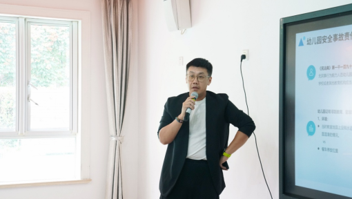 首先,史羽鴻律師針對《學前教育法》的立法背景、重點法條、實務案例和要點建議展開主題培訓。史律師指出,當前學前教育領域存在資源分配不均、師資建設不足、“小學化”傾向突出、安全管理漏洞等問題。2025年6月1日起施行的《學前教育法》針對上述痛點,從規范行業發展、保障幼兒權益、推動公平普惠三方面入手,明確學前教育的公益屬性,要求政府加大投入、規范教師管理、禁止“小學化”教育,為學前教育行業的健康發展奠定法治基礎。圍繞法律框架,史羽鴻律師詳細解讀了總則、幼兒園、保育教育、監督管理等八大章節。結合“幼兒拿紙巾摔傷”典型案例,史羽鴻律師依據《中華人民共和國民法典》及《學前教育法》,建議園所運用數字化管理工具建立可追溯的管理檔案,妥善留存監控錄像、安全巡查記錄、培訓演練資料等證據,切實提升園所合規管理水平。