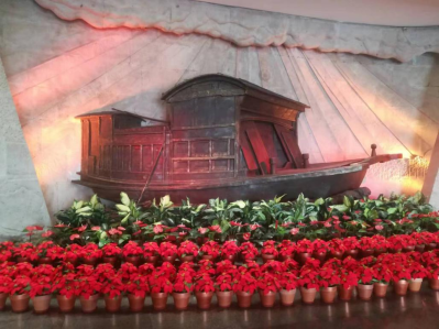 南湖紅船位于南湖湖面,是一條單夾弄絲網(wǎng)船,長約16米,寬3米。內(nèi)有前艙、中艙、房艙和后艙,中國共產(chǎn)黨第一次全國代表大會在中艙舉行。