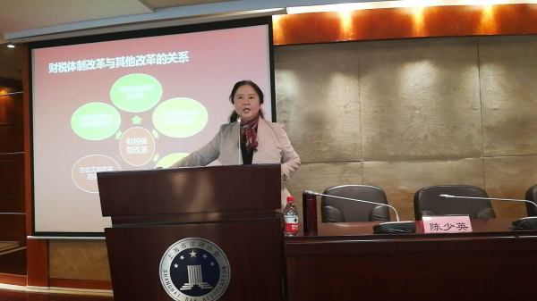 陳少英教授首先解釋了《中共中央關于全面深化改革若干重大問題的決定》將“財稅體制改革”作為“全面深化改革”的重點之一的緣由。對《決定》針對“財稅理念”的新提法作了解讀,特別解釋了《決定》中提及的“財政是國家治理的基礎和重要支柱”“科學的財稅體制是優化資源配置、維護市場統一、促進社會公平、實現國家長治久安的制度保障”“建立現代財政制度”“落實稅收法定原則”“建立事權與支出責任相適應的制度”等新提法的“前世今生”。重點解析了《決定》對財稅制度的轉變、涉及的財稅改革的目標、涉及的財稅問題要點等關鍵內容。基于預算管理改革、完善稅收制度、建立事權和支出責任相適應的制度等內容的介紹,陳少英教授從理論研究的角度為與會者厘清了財稅改革與國家治理的關系,財稅體制改革和其他改革的關系。
