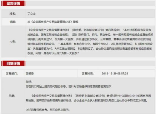 根據(jù) 2018 年 12 月 29日國資委網(wǎng)上提問的回復(fù), 32 號(hào)文的適用對(duì)象僅包括公司制企業(yè),有限合伙制企業(yè)份額的監(jiān)督管理不直接適用32號(hào)文。具體如下: