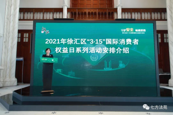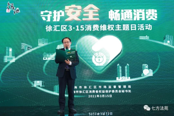 2021年徐匯區“3.15”消費維權主題日活動,3月15日下午在徐匯區人民政府舉行。上海市市場監管局一級巡視員、市消保委副主任胡浩、上海市市場監管局二級巡視員、市消保委副主任兼秘書長陶愛蓮、徐匯區委常委、副區長王宏偉、徐匯區人大常委會副主任盧鑒、徐匯區政協副主席王萍、徐匯區市場監管局黨委書記、局長俞曉紅、徐匯區市場監管局副局長毛潔、徐匯區司法局副局長孟毅敏等領導出席,出席本次活動還有徐匯區消保委負責人、區商業聯合會負責人、各委辦局、街鎮分管領導、徐匯區各商圈負責人、媒體代表等,七方所主任李華平律師代表事務所參會。本次主題活動線上線下同步直播。