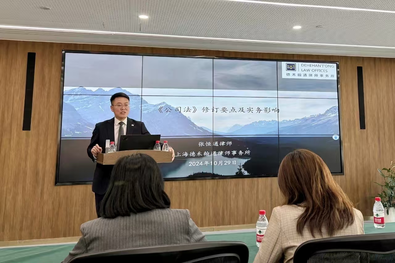 10月29日,德禾翰通律師事務所主任張恒通律師受邀參加由徐匯律師工作委員會主辦的“徐匯律師之家”律師分享培訓活動,并現場分享主題為《公司法修訂要點及實務影響》講座。