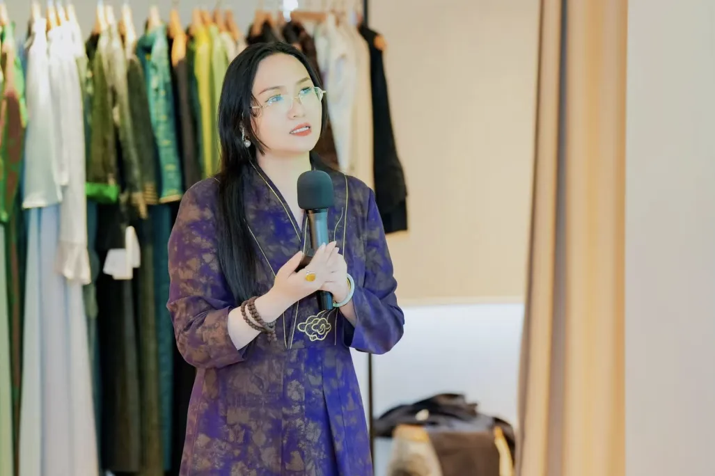 活動伊始,相生衣家的專業品牌設計師深入淺出地講解了“五行與穿衣技巧搭配”。設計師結合五行學說中木、火、土、金、水的特性,與色彩、材質及圖案的對應關系,為參與者展示了如何通過傳統智慧與現代時尚的結合,打造個人風格并增強自信。她強調,五行不僅僅是抽象的概念,更是日常生活中可以應用的實用法則,例如通過綠色長衫搭配紅色瑪瑙耳環,體現木生火的活力與熱情。參與者還在活動中試穿服裝,并由專業攝影師拍攝展示照片,體驗“東方自信之美”。