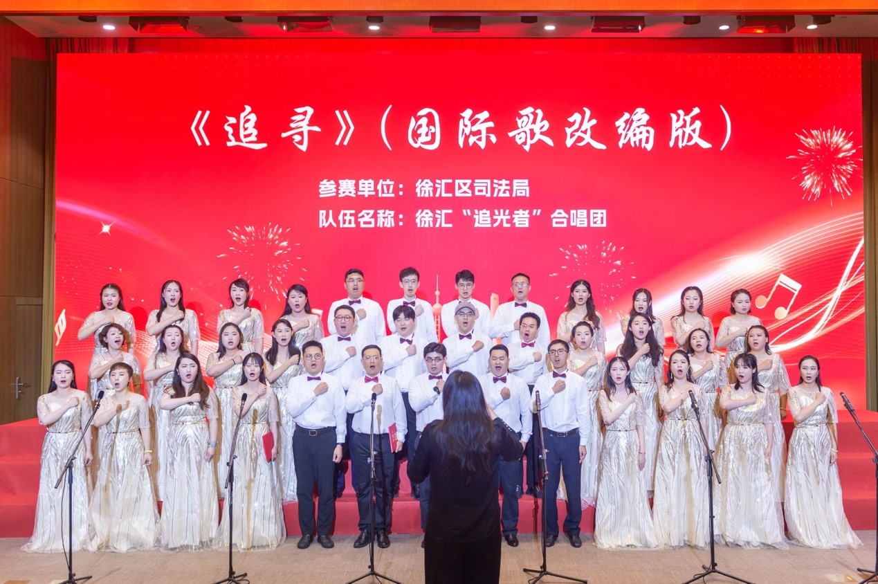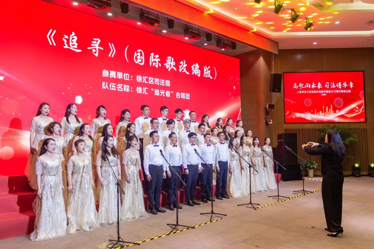 在上海市司法局隆重舉辦的“高歌向未來 司法譜新篇”——慶祝新中國成立75周年歌詠比賽的璀璨舞臺上,徐匯“追光者”合唱團以非凡的魅力和深情的演繹,贏得了全場觀眾與評委的熱烈掌聲與高度評價。這支由徐匯區(qū)司法局匠心獨運組建的合唱團,匯聚了來自司法局機關(guān)及區(qū)內(nèi)多家優(yōu)秀律所(如匯業(yè)、徳禾翰通、數(shù)科、隆安、恒隆、國巨等)的杰出歌唱才俊,他們以音樂為舟,歌聲為帆,共同駛向?qū)λ囆g(shù)的無限熱愛與對法律事業(yè)的深切執(zhí)著。