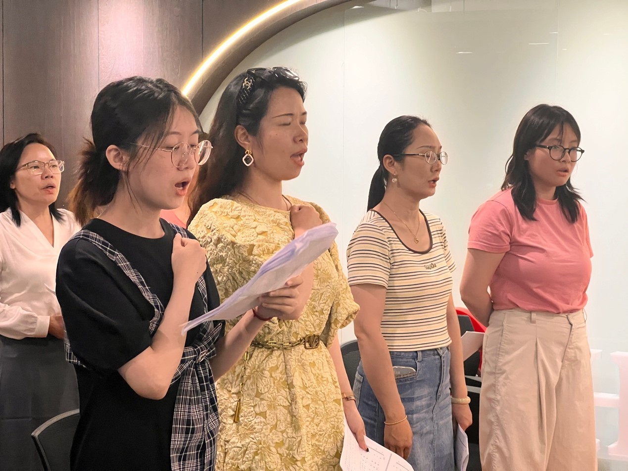 (圖為“追光者”合唱團在匯業(yè)律師事務(wù)所排練)