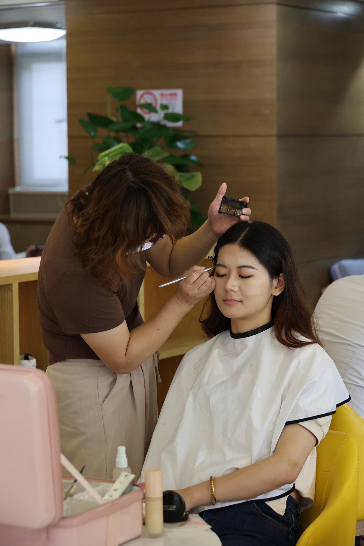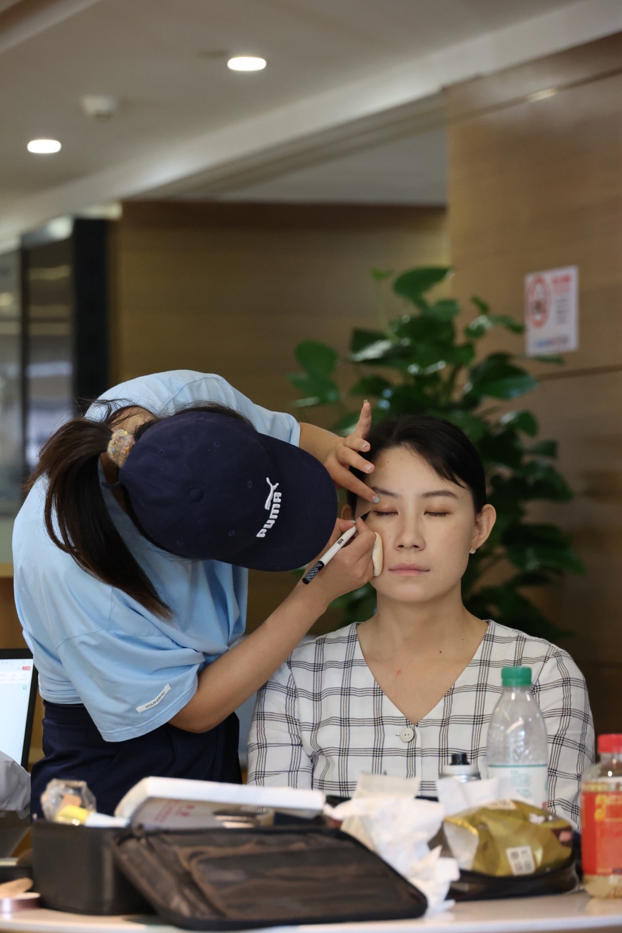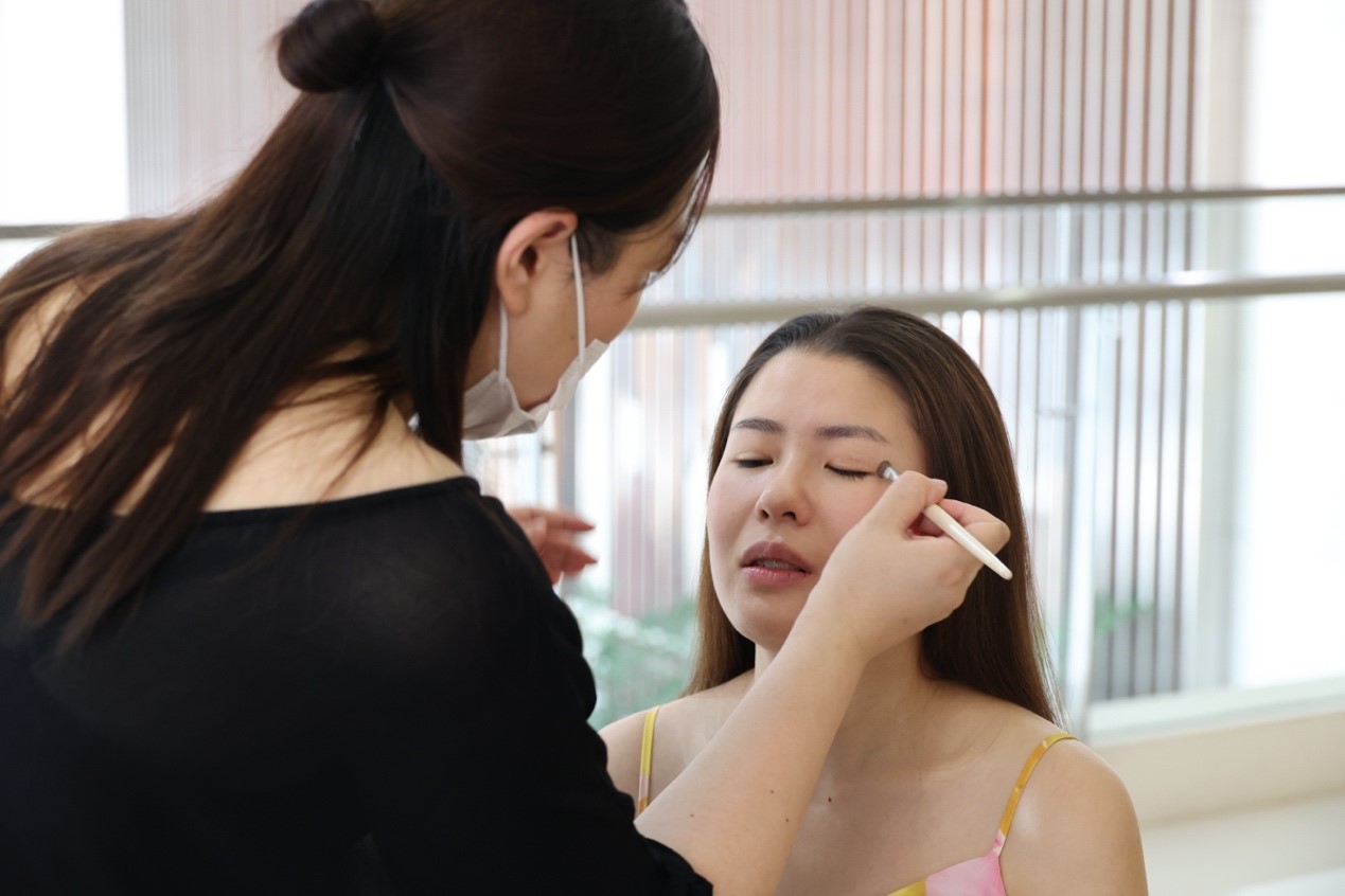 (圖為比賽當(dāng)天“追光者”女團員化妝)