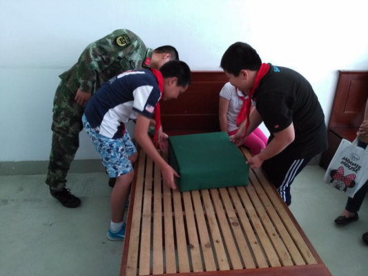 隨后,在中隊(duì)指導(dǎo)員的帶領(lǐng)下,眾人一齊參觀了武警官兵們的宿舍、學(xué)習(xí)室、榮譽(yù)陳列室及裝備室等,整齊的內(nèi)務(wù)和眾多的榮譽(yù)獎(jiǎng)?wù)隆ⅹ?jiǎng)狀讓小朋友們都嘆為觀止。此外,在部分武警官兵的講解與指導(dǎo)下,小朋友們還親自進(jìn)行了內(nèi)務(wù)整理并近距離接觸了部分裝備器材,體驗(yàn)了一把軍人及軍營生活。