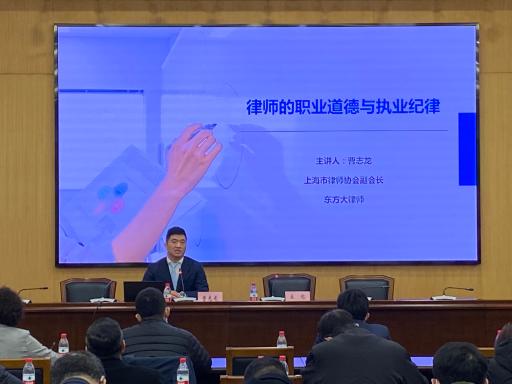 本次培訓邀請上海市律師協會副會長曹志龍律師作“律師的職業道德和執業紀律”的專題講座。區內各律所律師、行政人員等130余人參加培訓。