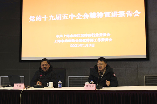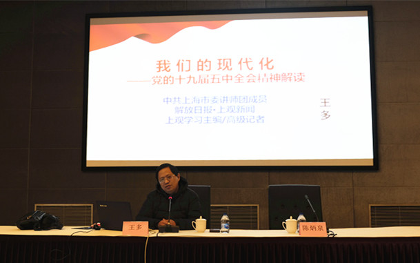 1月8日下午,中共上海市松江區律師行業委員會、上海市律師協會松江律師工作委員會在區委黨校舉辦黨的十九屆五中全會精神解讀會。本次解讀會邀請上海市黨的十九屆五中全會精神宣講團成員、解放日報·上觀新聞“上觀學習”欄目主編、高級記者,智庫專家學者王多博士作了題為《我們的現代化——黨的十九屆五中全會精神解讀》專題報告。