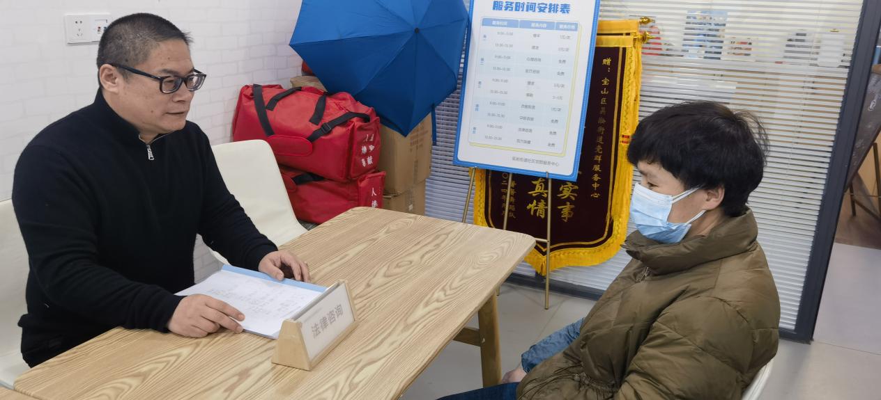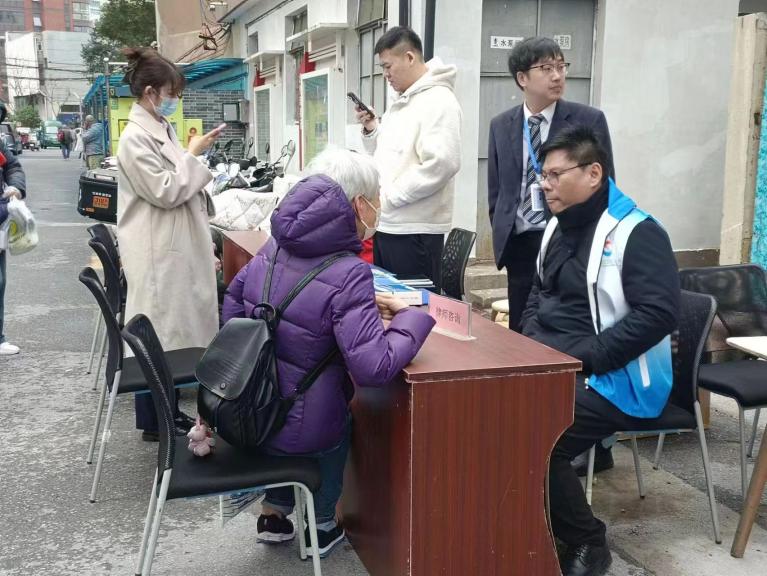 上海市光大律師事務所吳海、李福生、陶云、陳璐莎等律師分別前往嘉興路街道、廣中路街道的各個居委會為社區居民提供公益法律咨詢服務。