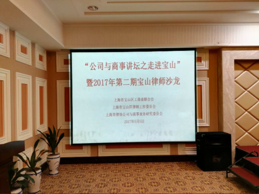 2017年5月5日,上海市律師協會公司與商事業務研究委員會、上海市寶山區律工委及上海市寶山區工商業聯合會聯合舉辦2017年寶山區第二屆律師沙龍,本次律師沙龍的主題為:公司清算實務及股權激勵實務,主講人分別為盈科(上海)律師事務所余理平律師與海華永泰律師事務所蓋曉萍律師,本次律師沙龍由寶山區律工委副主任譚春明主持,出席本次律師沙龍的領導有上海市律師協會副會長鄒甫文、上海市寶山區工商業聯合會副主席葉公超及上海市律師協會公司法與商事業務研究會主任。
