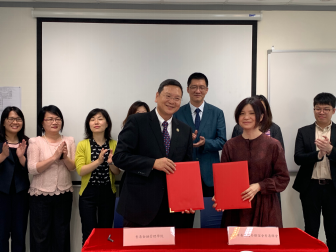開學典禮的最后,由黃浦區僑辦副主任施海燕作為代表與香港金融學院郭啟興院長進行了合作簽約儀式。