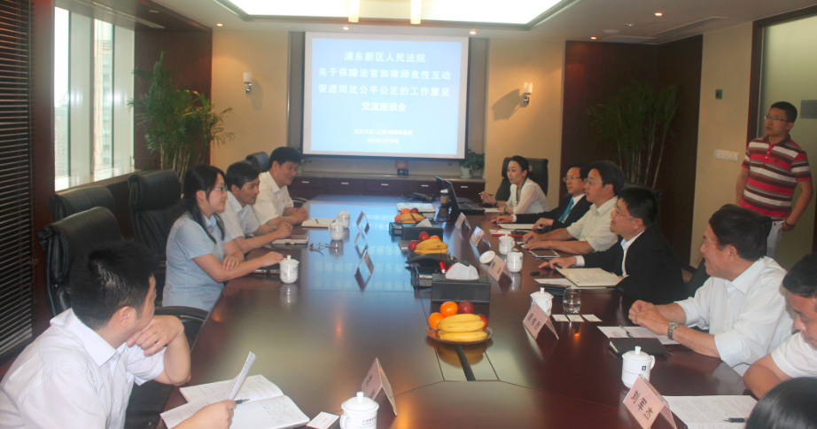 7月15日、16日和22日,浦東新區(qū)人民法院紀(jì)檢組組長衛(wèi)世平等一行3人分別專程到錦天城、申達(dá) 、融孚、 大成律師事務(wù)所召開調(diào)研座談會,對擬制訂的《浦東新區(qū)人民法院關(guān)于保障法官和律師良性互動促進(jìn)司法公平的工作意見》 征求律師意見。 浦東司法局副局長劉龍寶、黨組成員政治部主任陸燕萍一同調(diào)研。