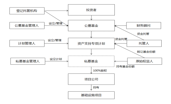 按照40號文及《征求意見稿》,目前基礎設施REITs的交易框架為公募基金+ABS的形式,當然由于稅籌搭建股債結構以及專業化管理等原因,在底層還可能在設計一層私募基金,即公募基金+ABS+私募基金,從縱向的層級看是比較繁瑣的,項目到基金的鏈條過長可能導致決策邏輯和決策機制的不一致。