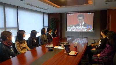 2012年11月8日上午9點,金茂凱德律師事務所黨支部組織所內黨員律師和積極分子收看黨的十八大開幕式。大家表示,黨的十八大將開辟中國特色社會主義道路的新篇章,十八大報告中提出將更加重視社會新階層組織和人士的作用,重視法制保障在社會管理中的作用等都為我們律師在新時期發揮聰明才智提供了舞臺。新黨員周佩表示,律師只有在黨的領導下才能有所作為,才能為民族復興和依法治國偉業作出貢獻。