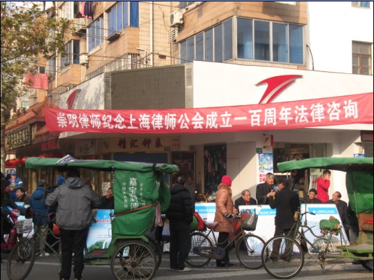 為紀(jì)念上海律師公會(huì)成立100周年,進(jìn)一步弘揚(yáng)法治精神,崇明縣律師工作委員會(huì)結(jié)合上海市第二十四屆憲法宣傳周契機(jī),在縣司法局及市律師協(xié)會(huì)的支持下,于2012年12月8日在南門八一路人民路路口舉辦崇明縣律師協(xié)會(huì)紀(jì)念上海律師公會(huì)成立100周年法律咨詢活動(dòng),吸引了全縣所有的律師事務(wù)所參與,現(xiàn)場(chǎng)共有16名律師參加了該活動(dòng)。