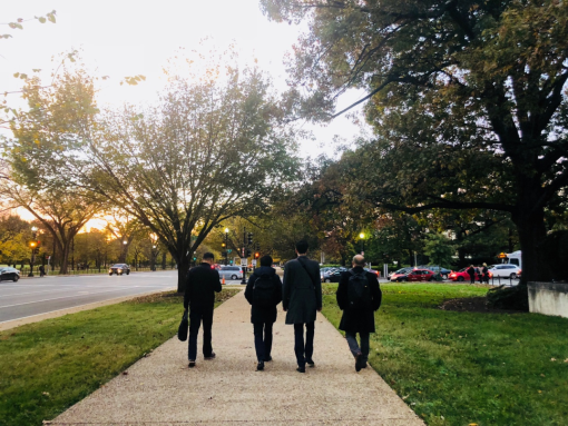 在華府的生活是簡單的。我們重溫了久違的“兩點一線”生活,日出而作、日落而息。不再有上海的駕車生活,每日的公交往返畫出了大家“公寓—教室—公寓”的學習軌跡。背著雙肩包穿梭于兩地,大家猶如回到了青蔥大學時代,重新勾起了每個人心里潛藏的朝華情懷。即使是第一天上課遇上的滂沱大雨、還是今天美國“Veteran's Day”帶來的公交意外Delay,這樣的生活仍帶給大家難掩的悸動和興奮。