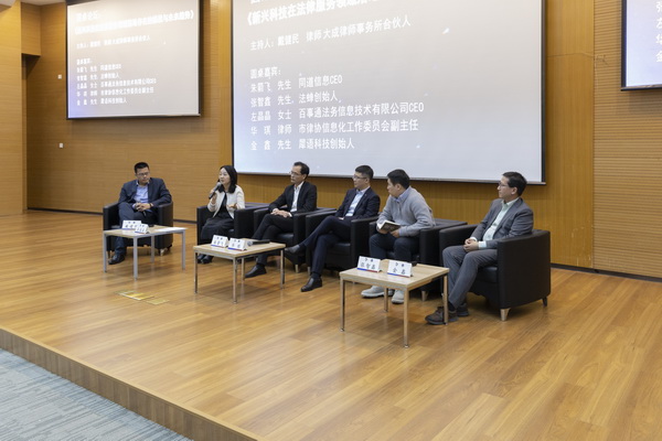 第三場的圓桌會,由北京大成(上海)律師事務所合伙人戴健民律師主持,圓桌嘉賓同樣既有本市積極探索律師行業信息化建設的律師代表:市律協信息化工作委員會副主任、上海中夏律師事務所合伙人華琪律師,也有來自法律科技界的代表:百事通法務信息技術有限公司CEO左晶晶女士、同道信息CEO朱箭飛先生、法蟬創始人張智鑫先生、犀語科技創始人金鑫先生,討論圍繞《新興科技在法律服務領域落地存在的挑戰與未來趨勢》從不同角度共同探索科技化浪潮背景下法律服務的未來。