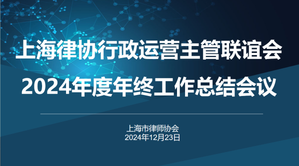 2024年12月23日下午,上海律協行政運營主管聯誼會在上海璟和律師事務所召開2024年度年終工作總結會議。會議由上海律協律所規范與發展委員會副主任周晶敏主持,近20位本市律所行政運營主管參加了會議。上海律協公共關系部相關人員、律所規范與發展委員會干事勞嘉馨列席會議。