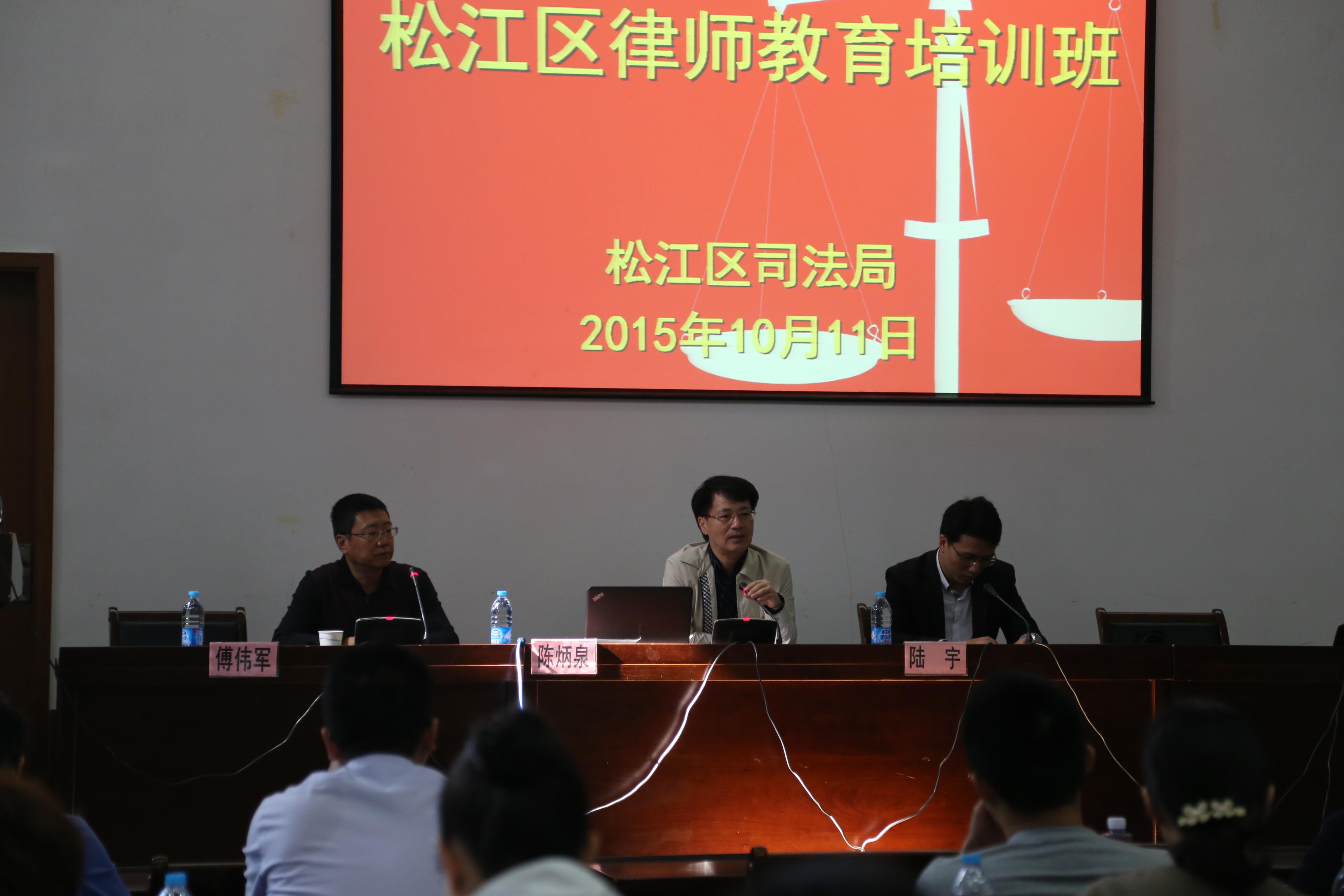 2015年10月11日,松江區(qū)司法局在華東政法大學(xué)明鏡樓尚法廳舉辦律師教育培訓(xùn)講座。培訓(xùn)講座邀請(qǐng)了上海小城律師事務(wù)所陸宇律師和復(fù)旦大學(xué)王德峰教授,分別講述了“新三板”相關(guān)法律知識(shí)和依法治國(guó)教育內(nèi)容,全區(qū)八十多名律師參加了培訓(xùn)活動(dòng),陳炳泉副局長(zhǎng)做了開(kāi)班動(dòng)員。