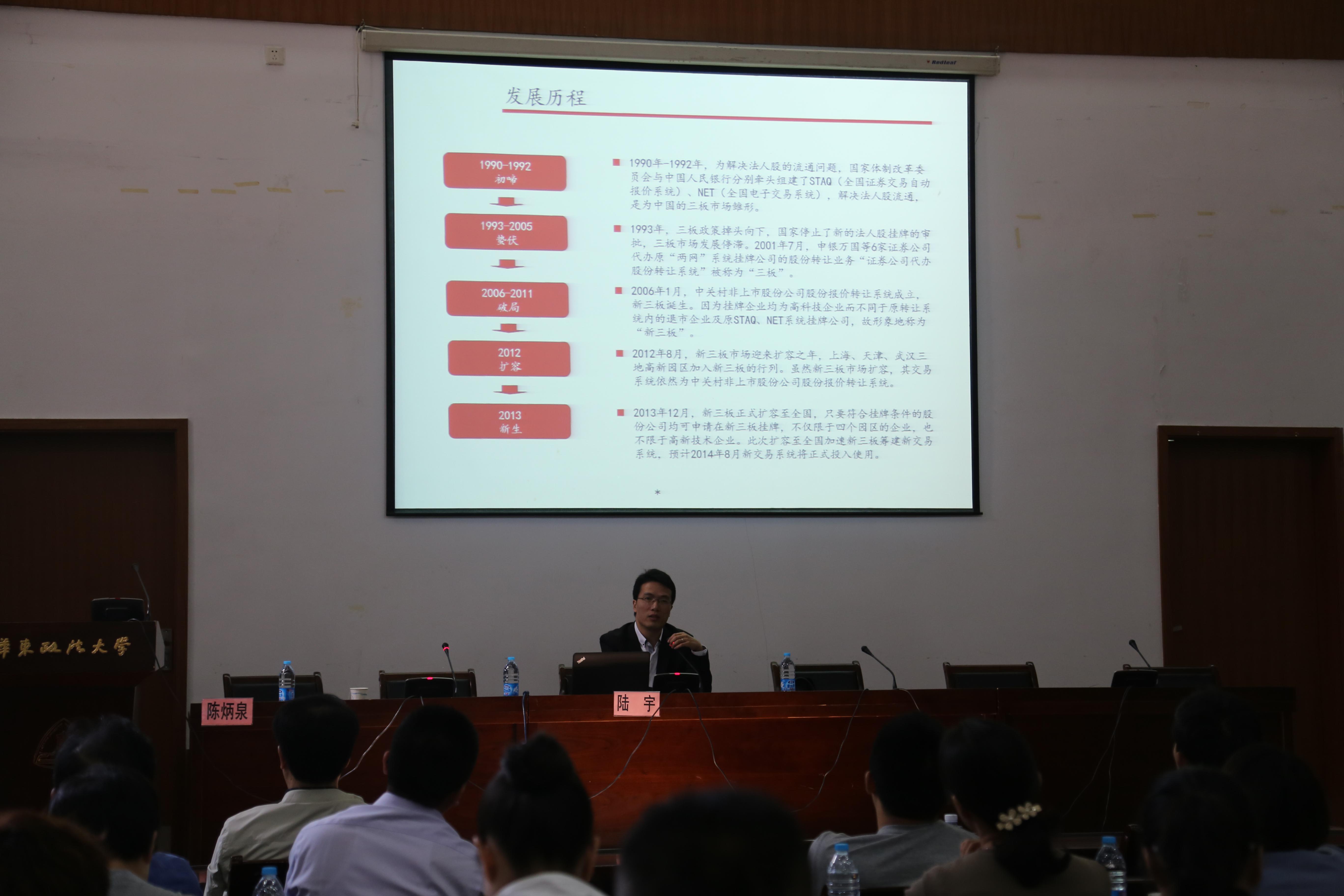 上午由小城所陸宇律師向大家介紹了新三板的一些基本情況,講述了新三板的一些特點(diǎn)以及能夠?yàn)槠髽I(yè)帶來(lái)的諸多益處,并且詳細(xì)解釋了新三板掛牌的操作流程和注意事項(xiàng)。陸宇律師運(yùn)用了大量的圖表、數(shù)據(jù),清晰地向大家講述了新三板的諸多內(nèi)容。