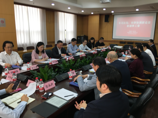 5月22日上午,上海市司法局律工處處長葉斌、上海市律師協會副會長朱林海,副秘書長潘瑜等一行五人調研走訪黃浦律工委,聽取律工委及律師代表對本屆理事會2019年度工作的意見及2020年度工作計劃的建議。