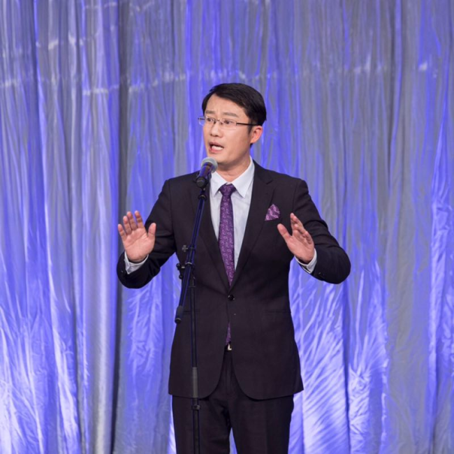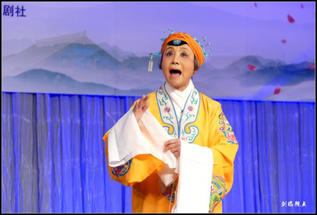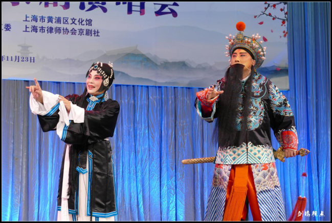 緊接著上場的是京劇社的社長錢麗萍律師,他和寇樹才律師合作了老生名劇《文昭關》。錢社長是京劇社唯一的坤生,大段的二黃成套唱腔、如泣如訴,將“伍子胥”愁悶的心情展露無遺,臺下觀眾也情不自禁地小聲哼唱,沉浸在美妙的藝術享受之中。而配演“東皋公”的寇樹才律師雖是首次彩唱,但唱得有板有眼、字正腔圓,顯然是經過名家指點且下過一番功夫的。一問才知,原來他是奚派名家張建國先生的入室弟子,果然法度嚴謹。