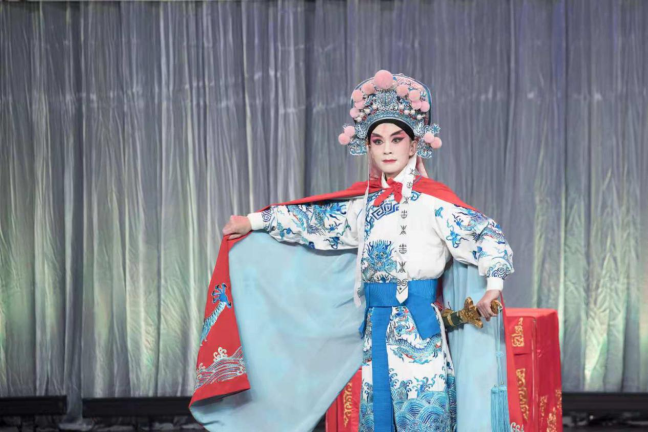 隨后,施奇律師登臺,前幾次演出均唱旦角戲的他,這次改唱了老生《三家店》選段,節奏明快,行腔自如,讓人耳目一新。而接演的凌琳律師則將演唱會帶至了一個小高潮。專業世家出身的她這次不演唱功戲,而是以一折八分鐘的刀馬旦《十三妹-趲路》應工。紅束腰、紅風貌、紅薄底鞋,斜挎彈袋、背弓、刀,一口動聽的“京韻白”,整個一副紅紅火火的俠女形象躍然于臺上,顯示出一位資深票友的豐厚的藝術修養。