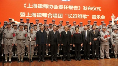 12月22日下午,上海市律師協會主辦的《上海律師社會責任報告》發布儀式暨上海律師合唱團“長征組歌”音樂會在上海音樂學院賀綠汀音樂廳盛大召開。出席本次活動的有市人大常委會委員、市人大內司委主任委員史秋琴、市司法局黨委書記、局長陸衛東、市司法局副局長王協、市法學會專職副會長施偉東、市律師協會會長俞衛鋒,以及來自市委政法委、市司法局、市律師協會、各區司法局、律工委的有關同志。全市律師代表及業內外嘉賓共500余人參加了今天的活動。