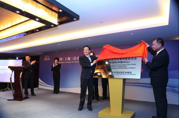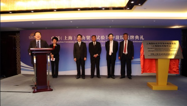 2013年10月22日,“中國(上海)自由貿易試驗區仲裁院”揭牌典禮在上海外高橋喜來登酒店隆重舉行。上海市委常委、副市長、中國(上海)自由貿易試驗區管委會主任艾寶俊代表上海市政府、自貿試驗區管委會發來賀信。來自最高人民法院、司法部、上海市高級人民法院、上海市人民檢察院、上海市第一中級人民法院、上海市第二中級人民法院、上海市浦東新區人民法院、上海市政府法制辦、上海市人大常委會法工委、上海市發展與改革委員會、上海市商務委員會、上海市司法局、上海市城市建設和交通委員會、中國(上海)自由貿易試驗區管委會、華東政法大學、華南國際經濟貿易仲裁委員會(深圳國際仲裁院)、美國、英國、法國、德國、比利時、墨西哥、智利、土耳其、奧地利、烏克蘭、南非、意大利、韓國、日本、馬來西亞、泰國駐滬總領事館及13家外國駐滬經貿機構、中華全國律師協會、上海市律師協會、30余家國內知名律師事務所、20余家外國律師事務所駐上海代表處、16家中央企業代表、其他國內外知名企業代表以及部分上海及江浙地區仲裁員,共280余名嘉賓出席了本次揭牌典禮。揭牌典禮由上海市國際貿易促進委員會會長、上海國際經濟貿易仲裁委員會(上海國際仲裁中心)岑富榮主任主持。揭牌典禮上,最高人民法院民四庭周帆副庭長與上海市人民政府法制辦公室劉華主任分別致辭,對“中國(上海)自由貿易試驗區仲裁院”的設立表示熱烈祝賀。周帆副庭長與司法部法制司韓秀桃副司長共同為中國(上海)自由貿易試驗區仲裁院揭牌。