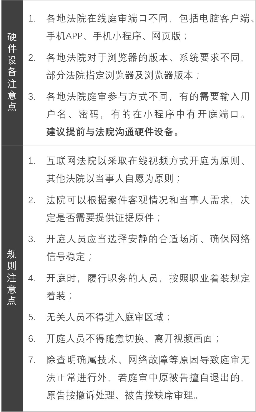 虹橋正瀚結合已參與在線庭審的經驗,建議在線出庭律師注意如下事項: